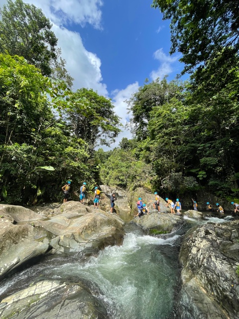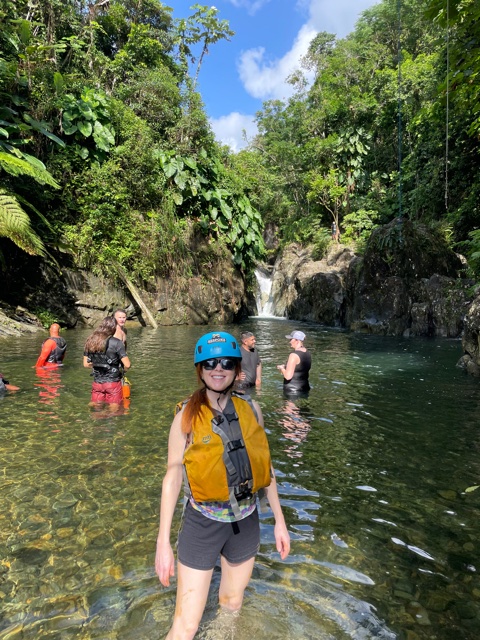 The El Yunque Day Tour with Lunch that we booked on Viator was the highlight of our entire trip. The day-long excursion took us through El Yunque’s misty trails to several waterfalls, natural water slides, and refreshing swimming spots, with and without rope swings. Be forewarned though: wear old clothes and bring a waterproof case for your phone. When our tour guide explained the trip in detail on the bus ride to El Yunque, describing the muddy hills we would scramble over and deep river crossings we’d trek through, everyone on the tour looked at each other in disbelief: What did we get ourselves into?! Once we all embraced the muck, it was exhilarating. After a half-day of hiking and swimming, the guides brought us to a lunch spot with multiple food trucks and shady seating areas. I ordered a pork bowl with rice, veggies, avocado, tostones and a delicious sriracha mayo, which I devoured.