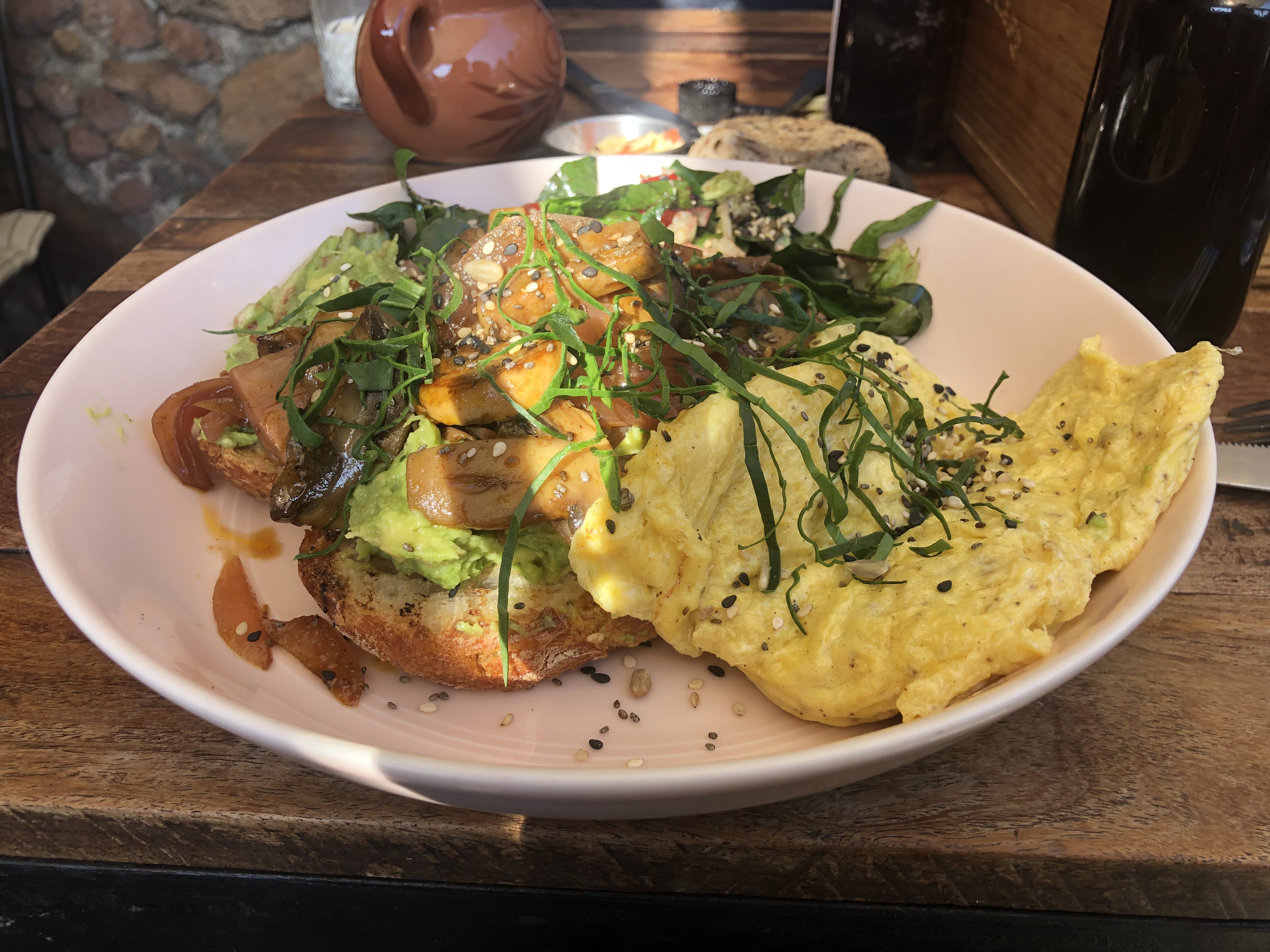 There are several French bakeries in SMA, including Panio, which also has multiple locations across the city. They sell enticing but average baked goods, in addition to other offerings such as coffee and sandwiches. There is another French cafe called El Petit Four that does sit-down breakfast in addition to coffee and pastries.