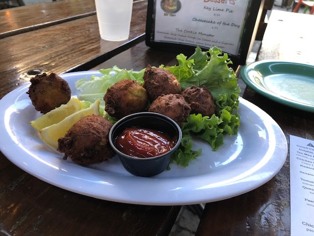 I ate dinner twice at Taverna on Lincoln Avenue, one night for sliders and the next night for Argentinian empanadas. Both meals were on point. In Key West I stopped at a restaurant on Duval Street and ordered the obligatory conch fritters, which were fresh, crispy and delicious.