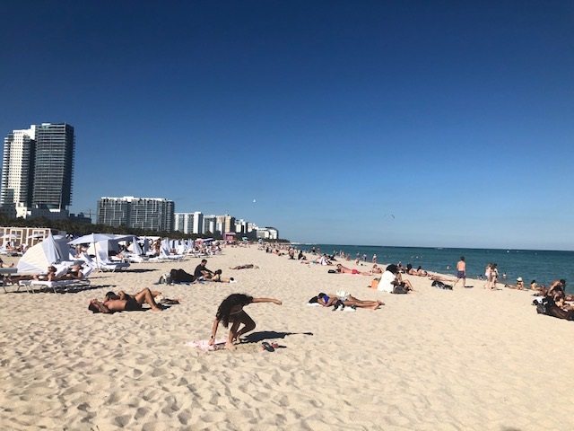 One thing you will notice is that everyone on the beach is trying to be an Instagram influencer. I’ve never seen so many people taking selfies or having their friends take photos of them sticking their butts out. I also watched an older woman with bleached hair wander around with no top on, and noted dozens and dozens of glistening, hairless chests and Speedos. The people-watching on Miami Beach is unparalleled.