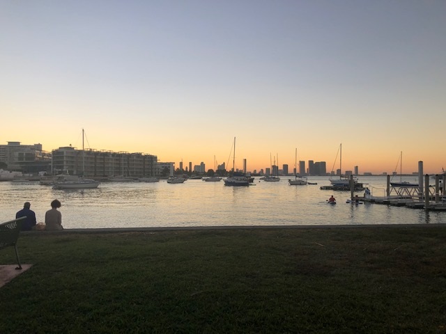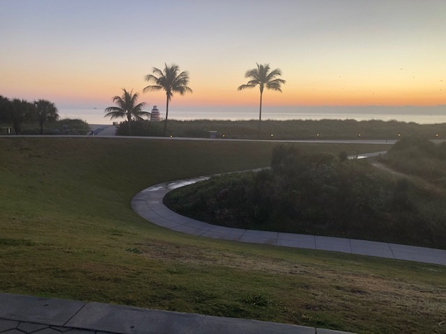 The Miami Beach Boardwalk is a paved trail that runs parallel to the beach, taking you past the Art Deco Historical District and winding around to the waterfront in Sunset Harbor/Biscayne Bay. I headed out at first light to catch the sunrise. Miami Beach is an active city and the Boardwalk is pretty busy even in the morning, so the earlier you go out, the better.