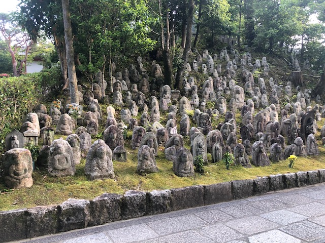 Our favorite was the Fushimi Inari shrine, home to the iconic 10,000 red torii gates. We took the subway from our hotel to the Fushimi (Nagoya) station at 6am. When we arrived, we were the only souls there. The grounds of the shrine are expansive and encompass the side of a mountain. We trekked up the trails underneath the torii gates and a green canopy of trees. A detour into a cemetery revealed various elevations of Japanese-style stone columns and wooden planks called sotoba honoring the deceased. It was quiet and magical. We reached one of the vista points around 7am, and crowds were already starting to grow. By the time we left around 7:30, throngs of people were blocking the pathways to take Instagram photos, ruining the vibes.